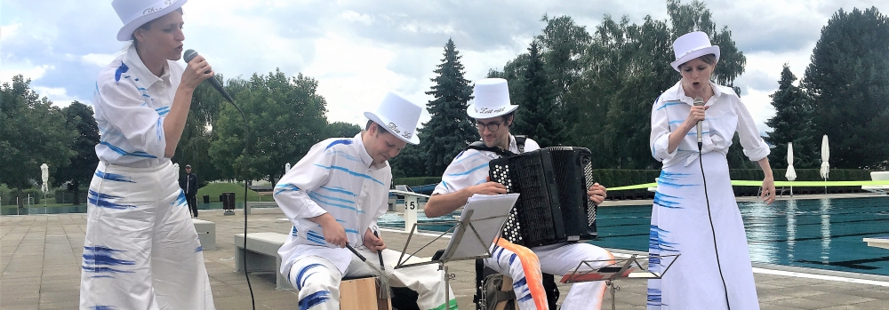 Eine Station von CS unterwegs, dem beliebten und mobilen Kurzkonzertformat des Carinthischen Sommers, macht heuer Halt am Kunstbahnhof in Velden am Wörthersee. Mit Esprit, Witz und frechen Texten lässt das Quartett Klakradl hören, wie traditionelle Musik aus der Region auch klingen kann. In den Farben des Festivals gekleidet, passieren sie auf ihrer Tour durch Kärnten und Slowenien auch den Kunstbahnhof in Velden, um mit Akkordeon, Klarinette, Cajon und Gesang vom slowenischen Komponisten Tomaž Svete lustvoll arrangierte Volksweisen aus dem Alpen-Adria-Raum ertönen zu lassen.