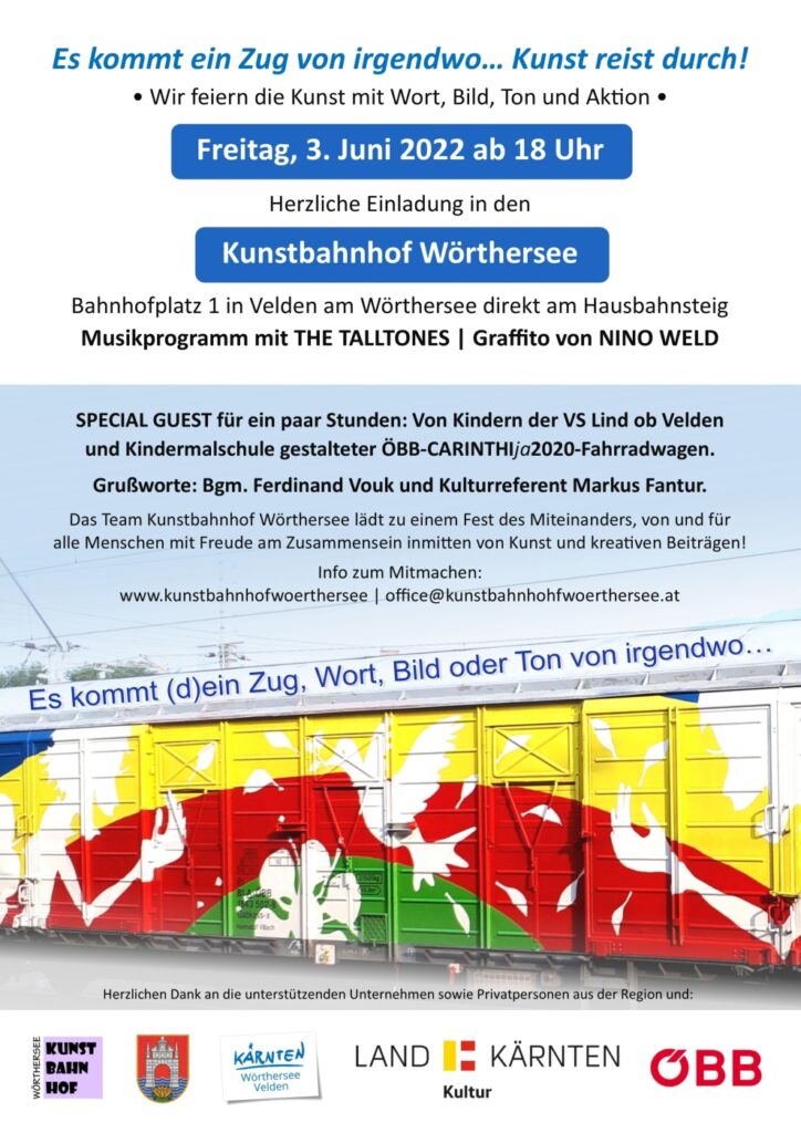 Kunstbahnhof Wörthersee OST + WEST am Veldner Hausbahnsteig am 3. Juni 2022 ab 18 Uhr.
