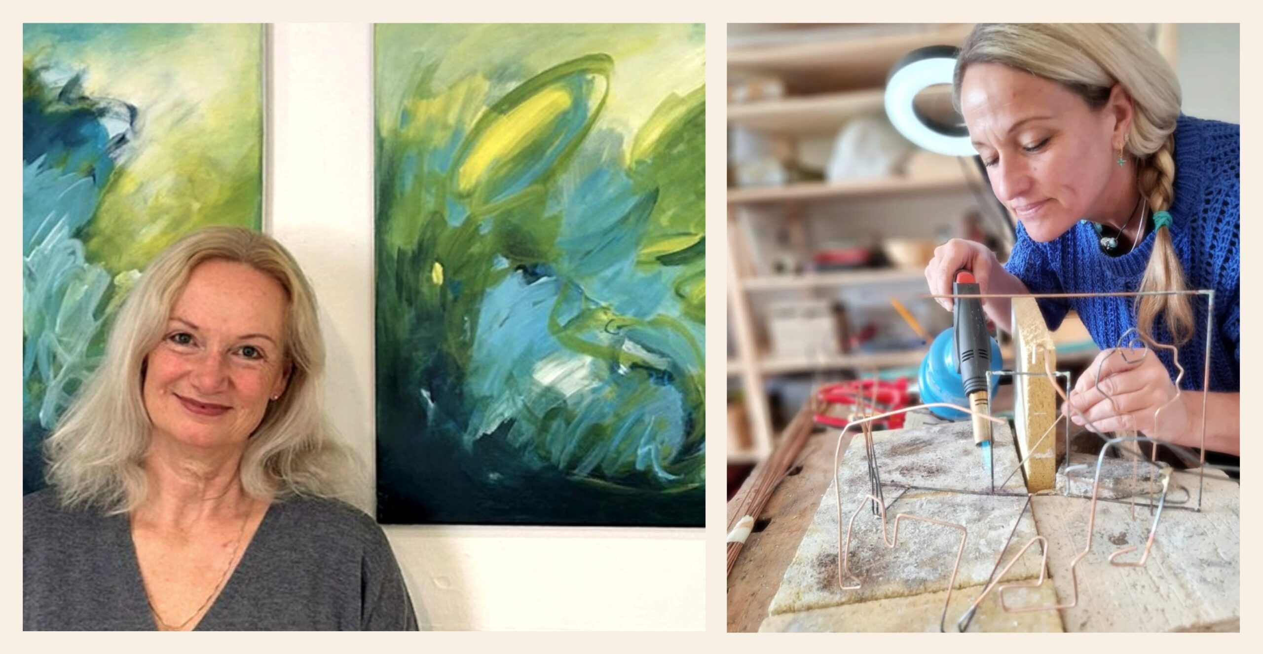 und Karin Herzele, beide bildende Künstlerinnen mit Ausbildung an der Akademie der bildenden Künste in Wien, werden vor Ort tätig sein und freuen sich über Besucher*innen und Gespräche. Trenkwalder wird unter Einsatz verschiedener Mittel und Werkstoffe experimentell arbeiten, Herzele verortet sich in der seriellen abstrakten Malerei.