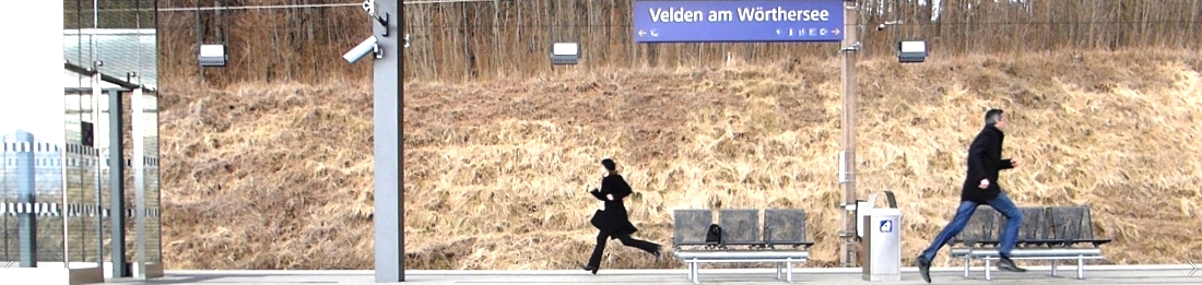 Videoarbeit KEINE ZEIT von Barbara Ambrusch-Rapp und Marcel Ambrusch im Fenster am Kunstbahnhof Wörthersee am Montag, 1. Juni 2020 von 0 bis 24 Uhr.